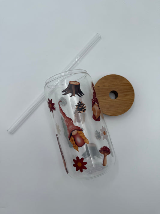 #697 - Forest Gnome Glass Cup with Straw and Lid