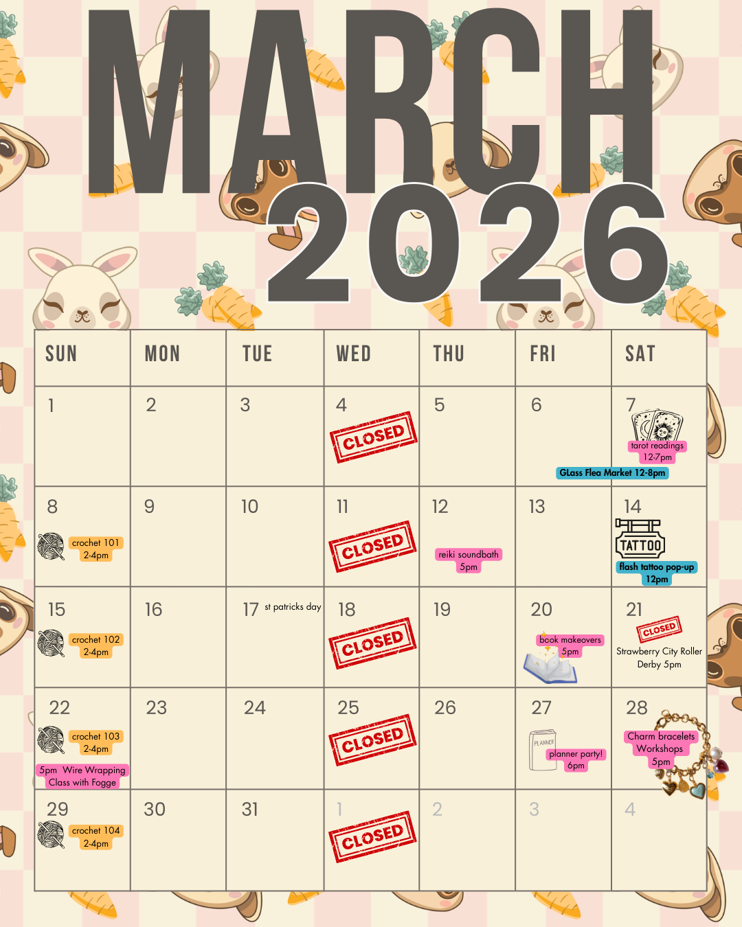 Workshops and craft nights, featured vendor days and pop-ups - oh my!