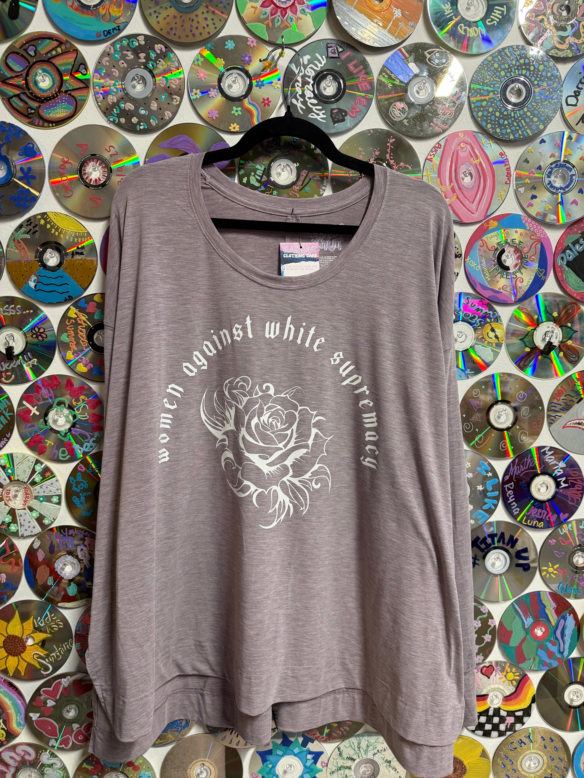 Lilac heathered shirt in 3xL with GlassSmut original Design Women Against White Supremacy in white on the chest.