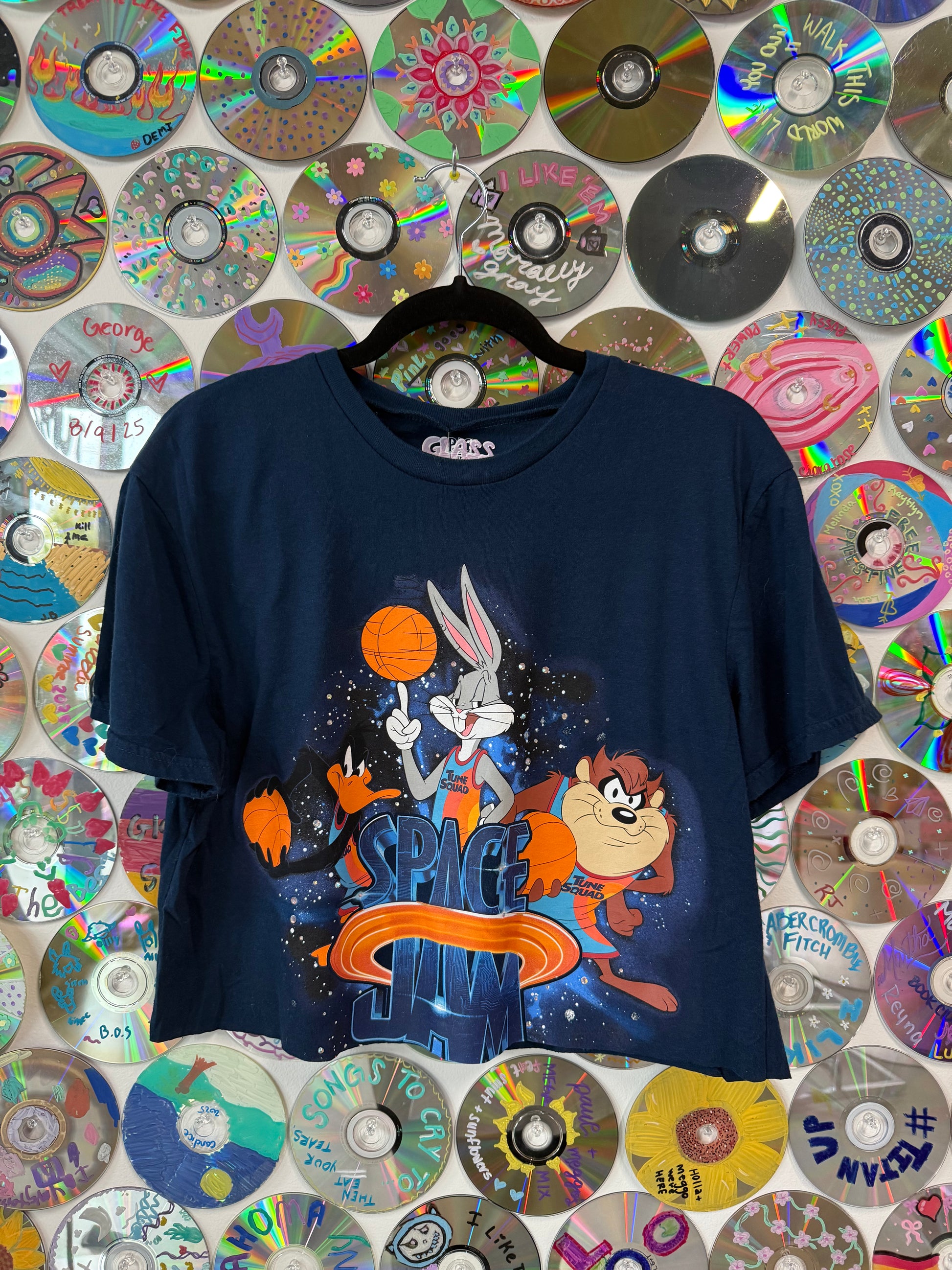 Space Jam cropped T-shirt with custom bedazzled accents size large.