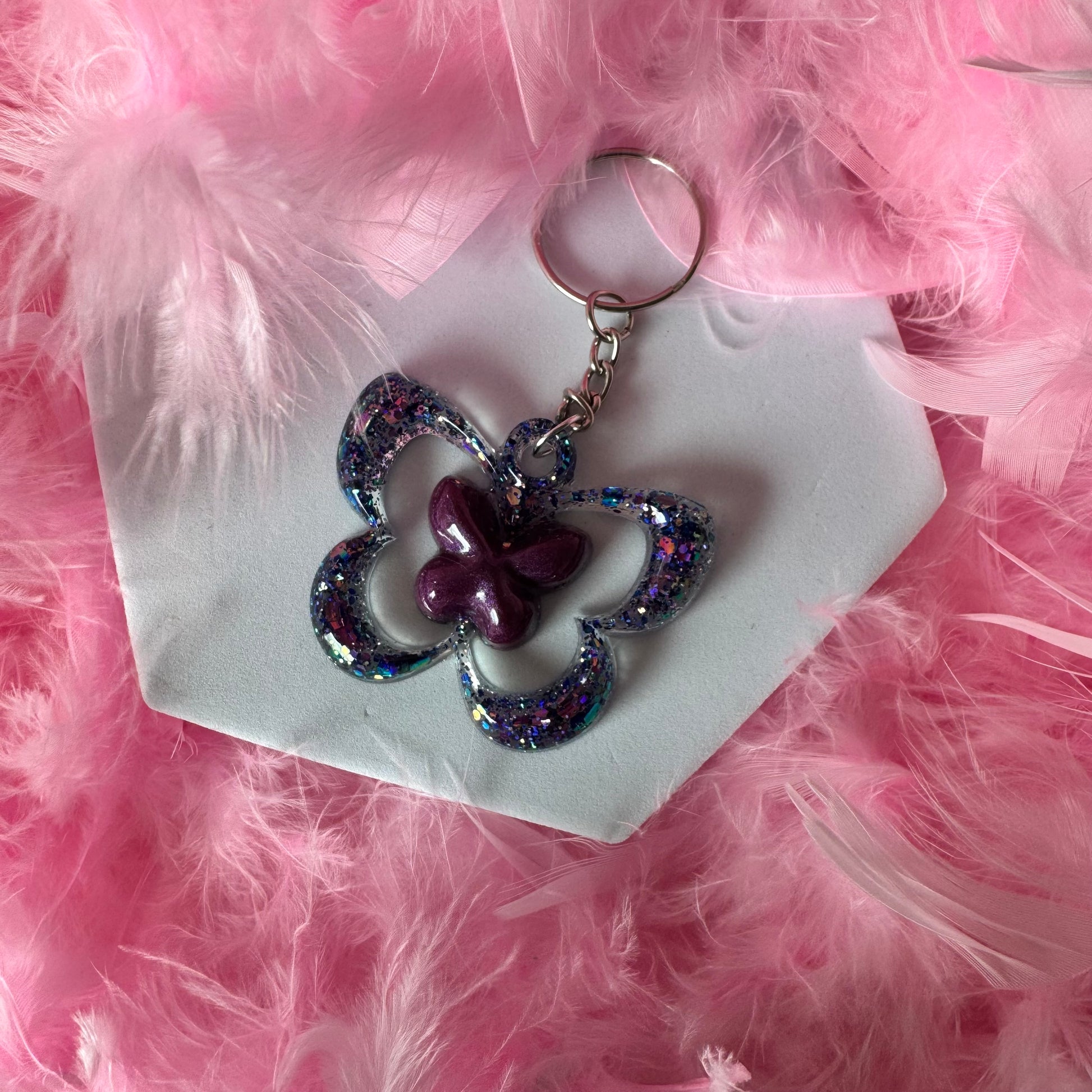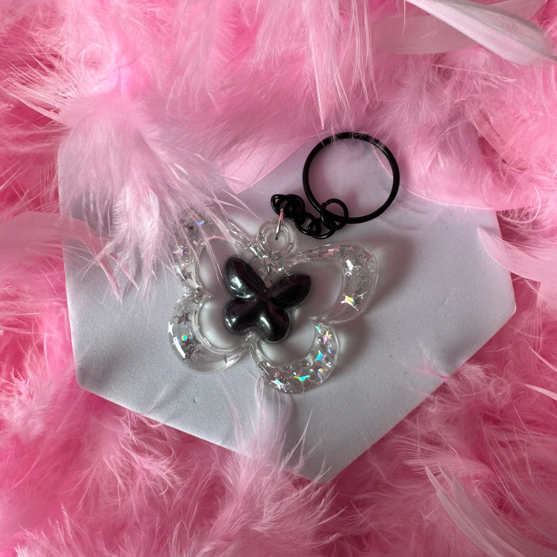 Hand poured, one of a kind, resin keychains with a double butterfly design.
