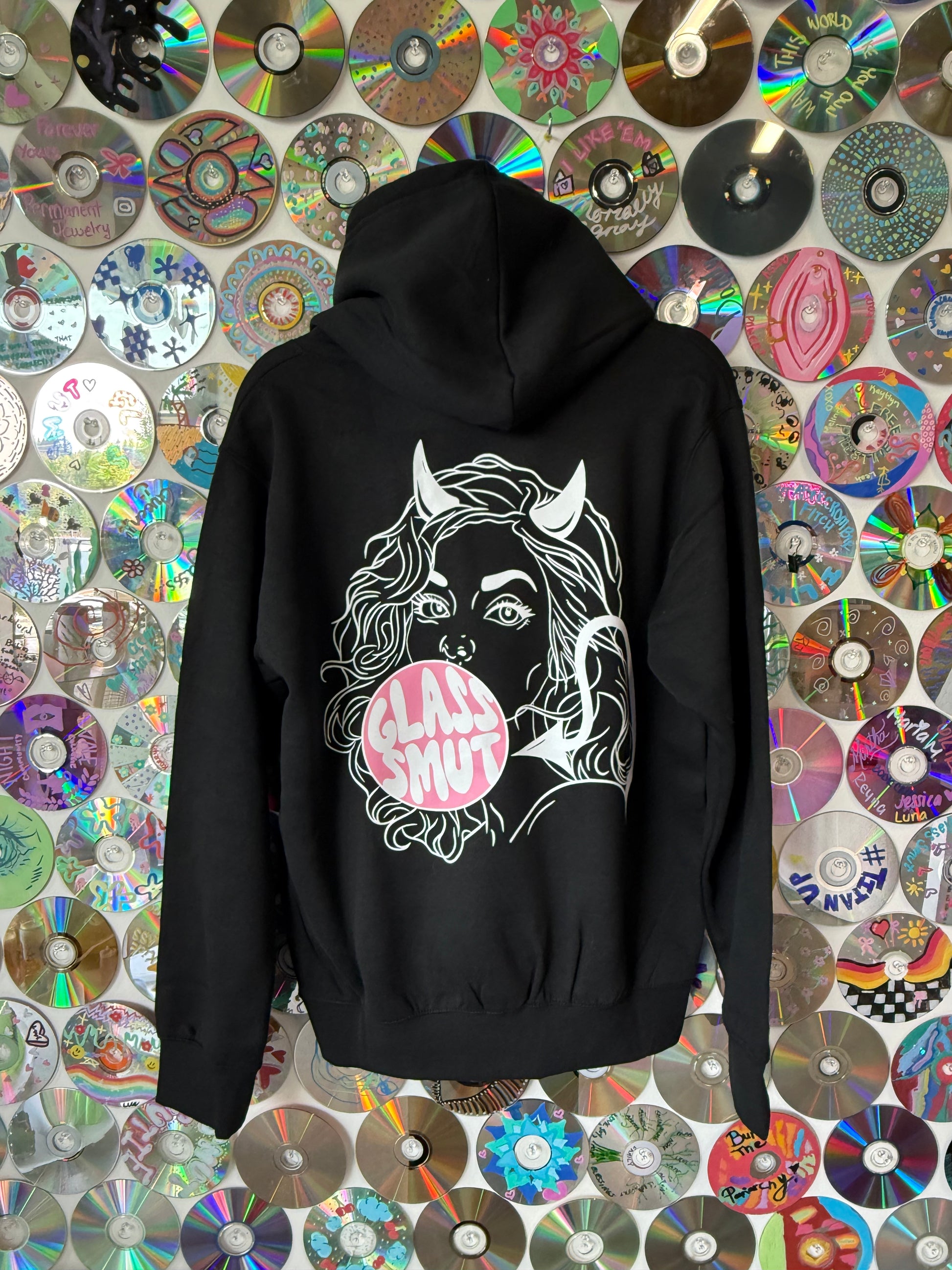 Black Size Small Hoodie with GlassSmut Bubble Demon signature design on the back in white