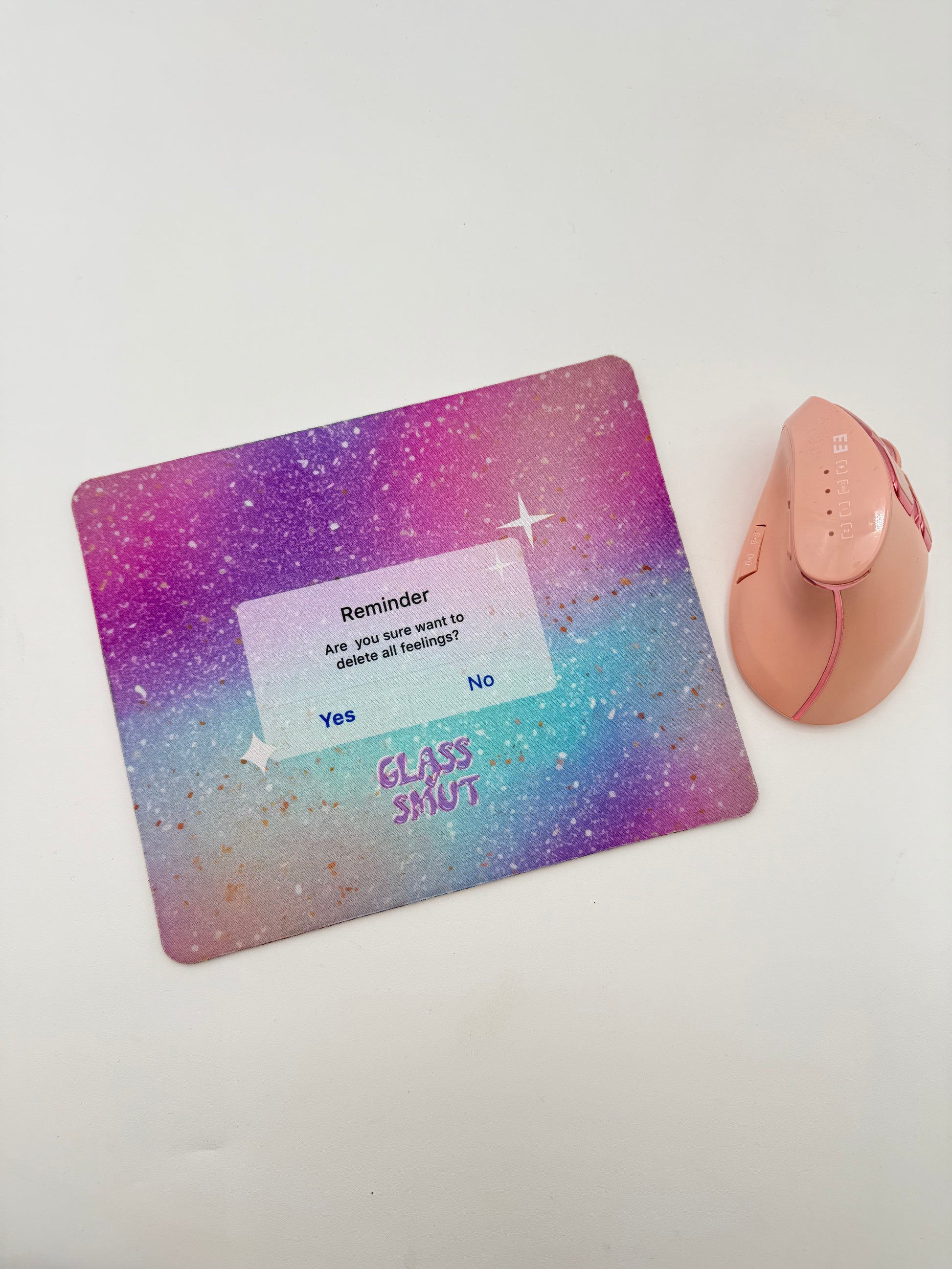 Neoprene mousepad with rubberized bottom that features GlassSmut Original design "Delete all Feelings"