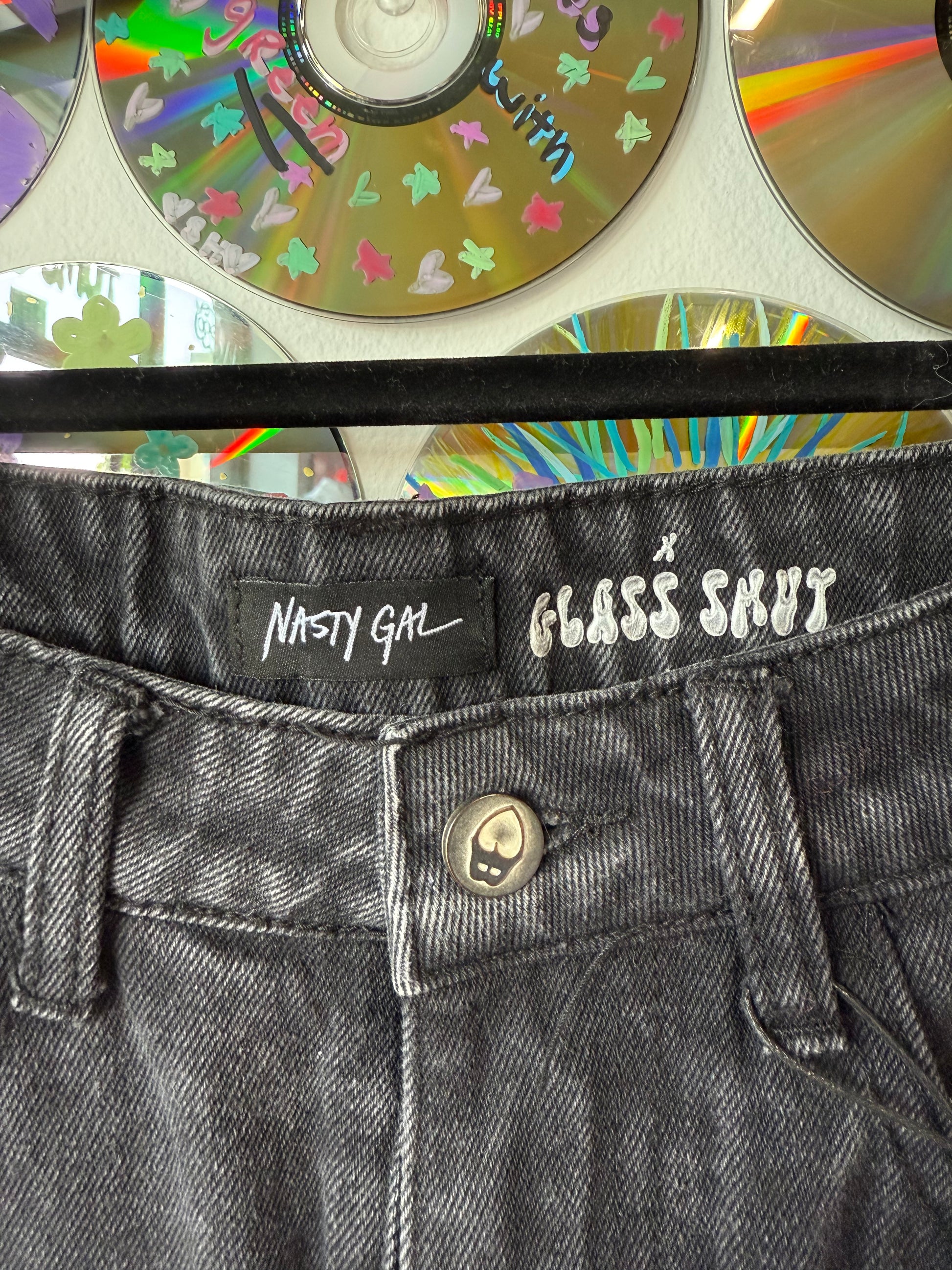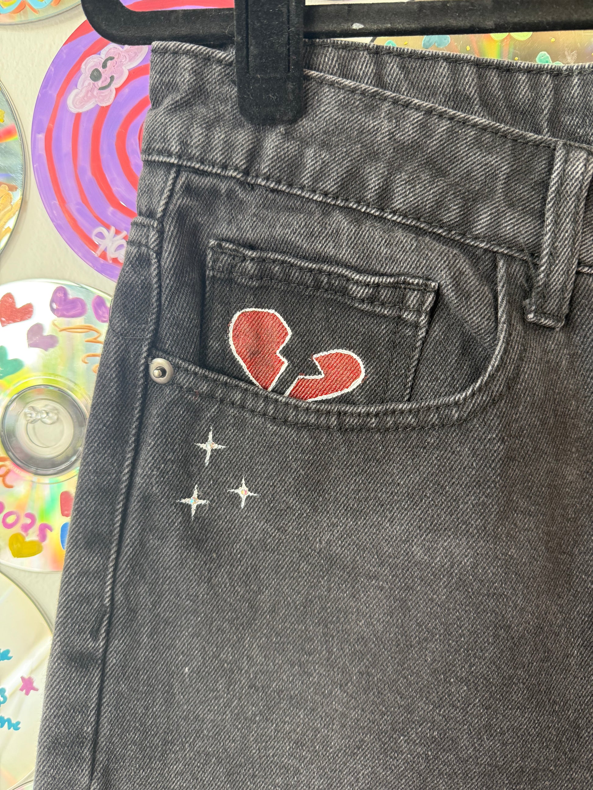 Black Denim with Rhinestone and Hand Painted Cutoff shorts