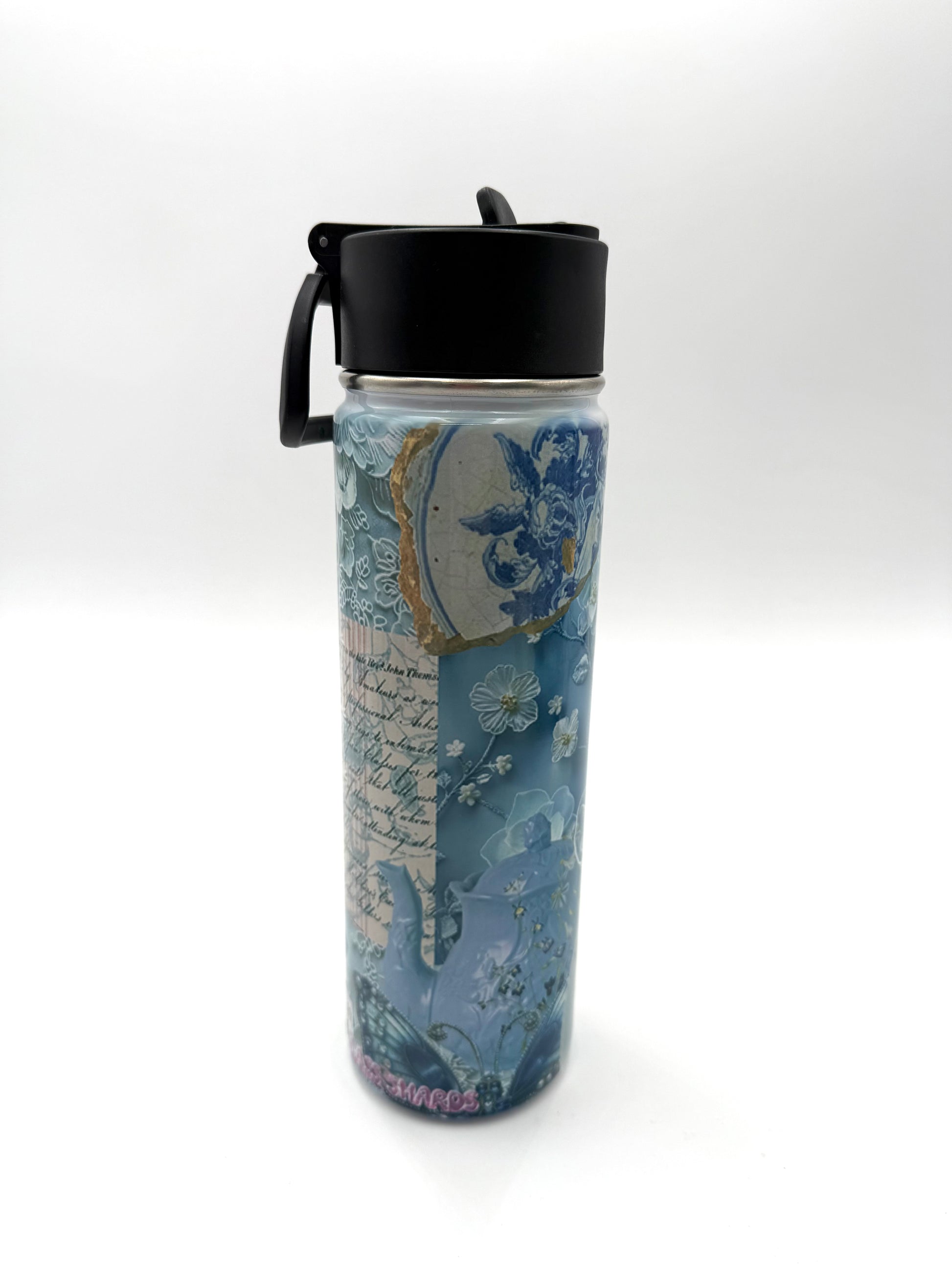 GlassSmut Signature Pattern Something Blue on 22oz Stainless Steel Tumbler, includes straw, flip to sip lid and loop for carrying.